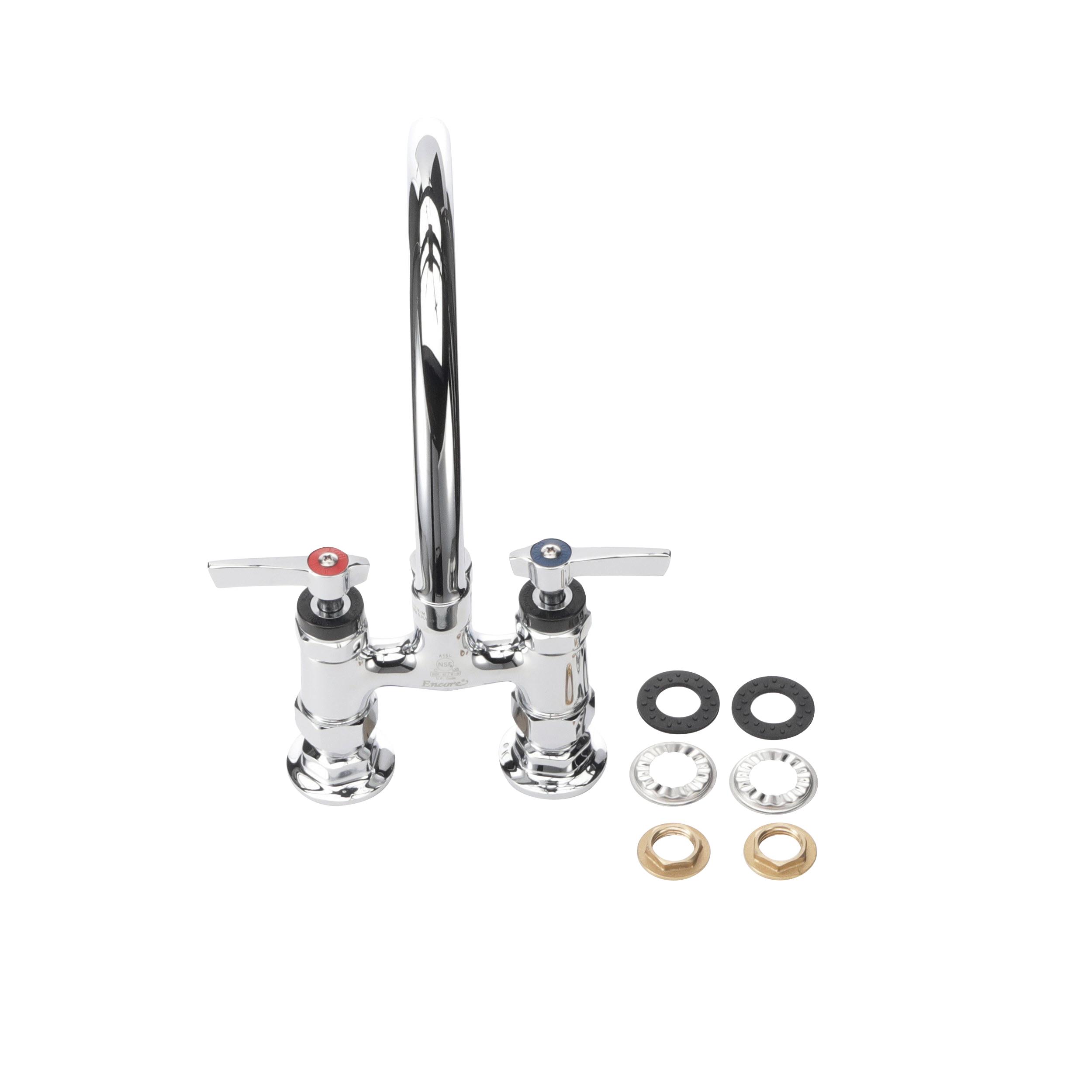ENCORE, 4" deck mount faucet with 8" gooseneck swivel spout